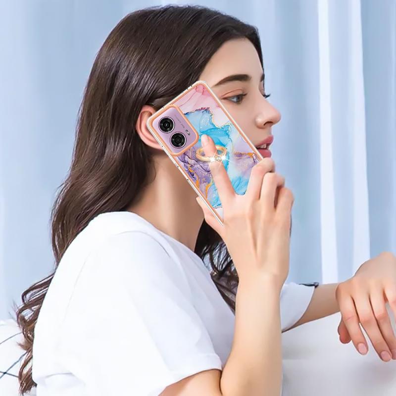 Θήκη τηλεφώνου για Motorola Moto G04 4G / G24 4G με ηλεκτρολυτική επιμετάλλωση IMD TPU με δακτύλιο (Ροζ Λέπια)