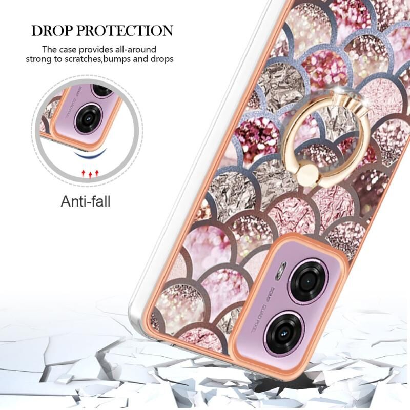 Θήκη τηλεφώνου για Motorola Moto G04 4G / G24 4G με ηλεκτρολυτική επιμετάλλωση IMD TPU με δακτύλιο (Ροζ Λέπια)