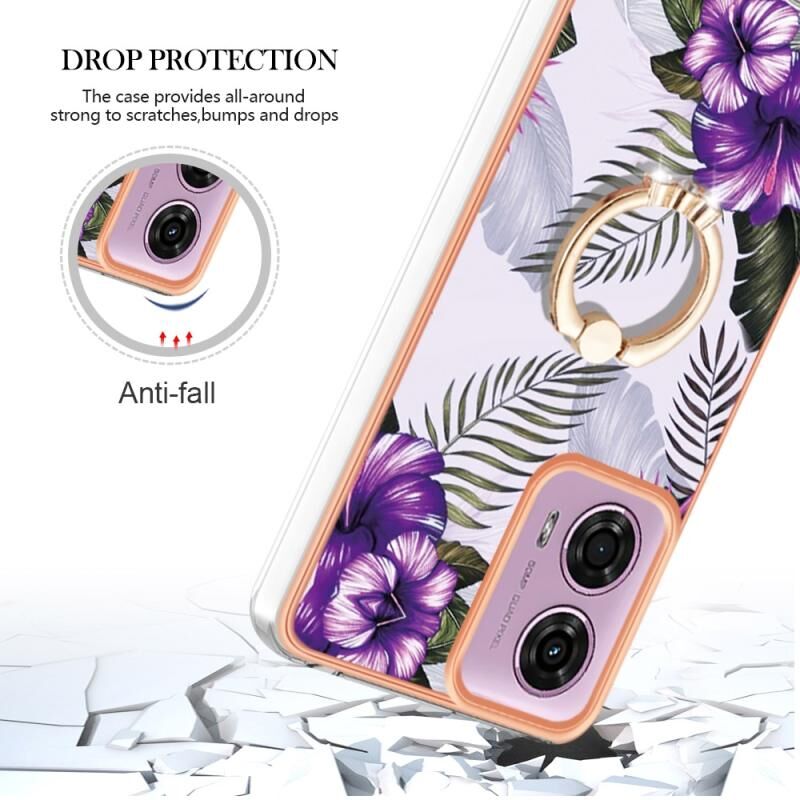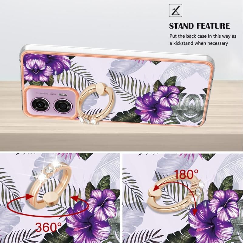 Θήκη τηλεφώνου για Motorola Moto G04 4G / G24 4G με ηλεκτρολυτική επιμετάλλωση IMD TPU με δακτύλιο (Ροζ Λέπια)