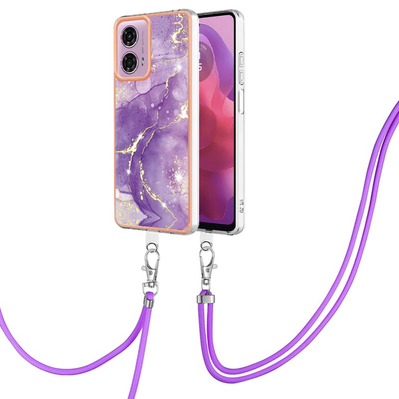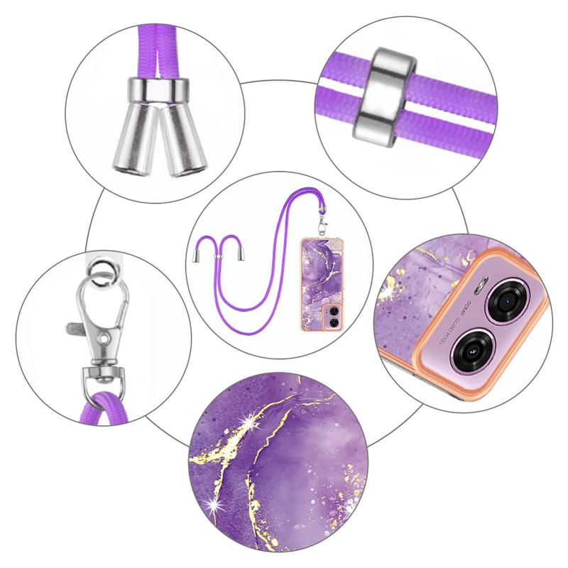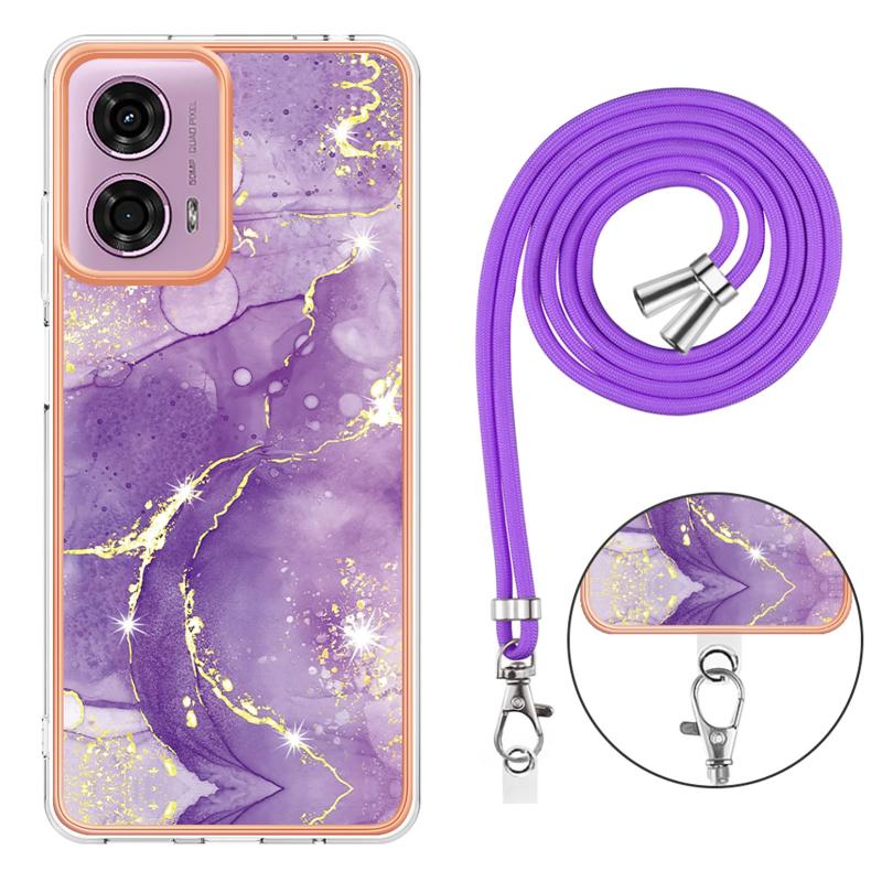 For Motorola Moto G04 4G / G24 4G Electroplating Marble Dual-side IMD Phone Case with Lanyard(Purple 002)