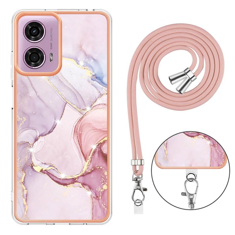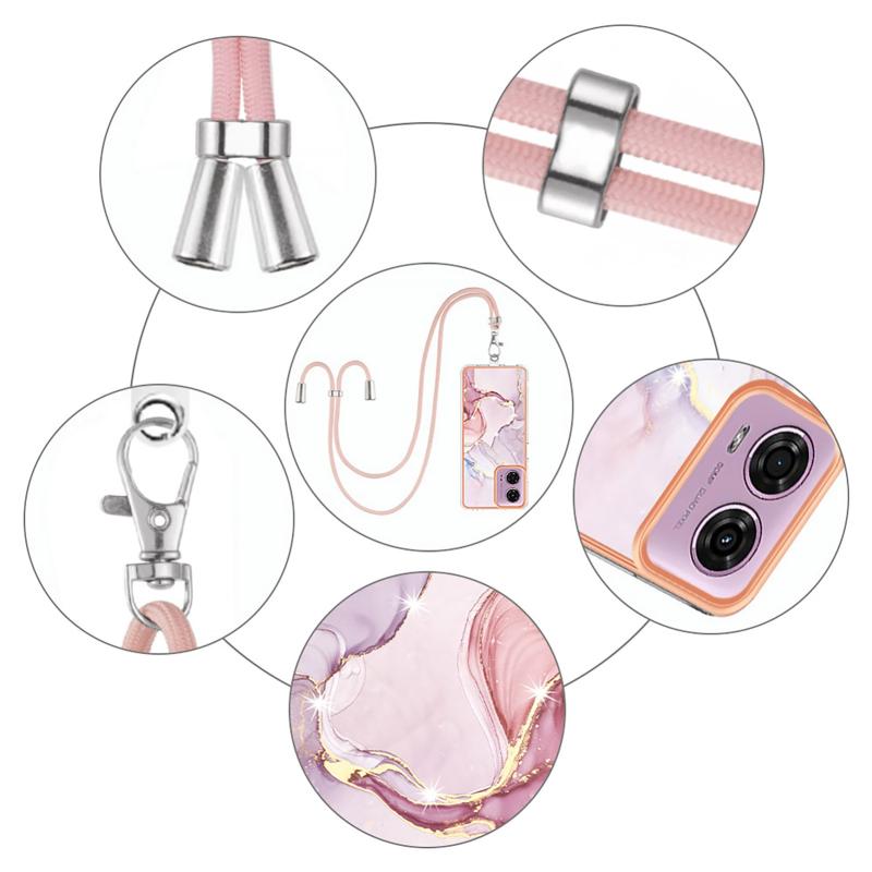 For Motorola Moto G04 4G / G24 4G Electroplating Marble Dual-side IMD Phone Case with Lanyard(Rose Gold 005)