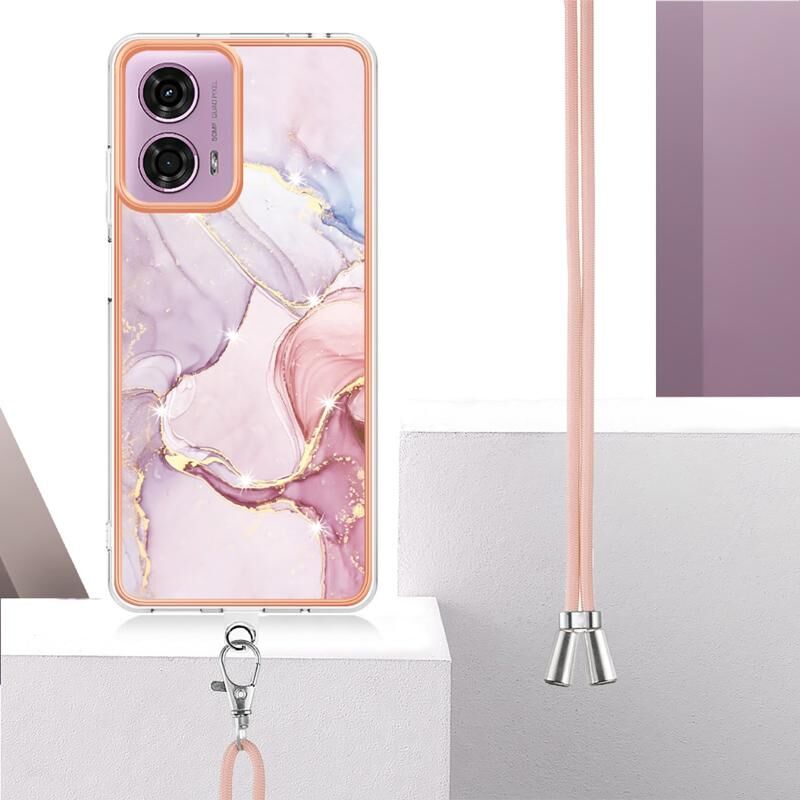 Θήκη τηλεφώνου με κορδόνι για Motorola Moto G04 4G / G24 4G, με ηλεκτρολυτική μαρμάρινη επικάλυψη IMD διπλής όψης (Μωβ 001)