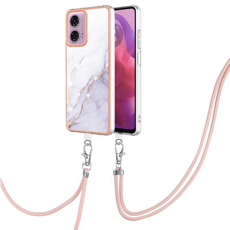 For Motorola Moto G04 4G / G24 4G Electroplating Marble Dual-side IMD Phone Case with Lanyard(White 006)