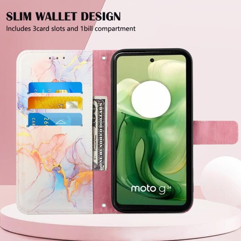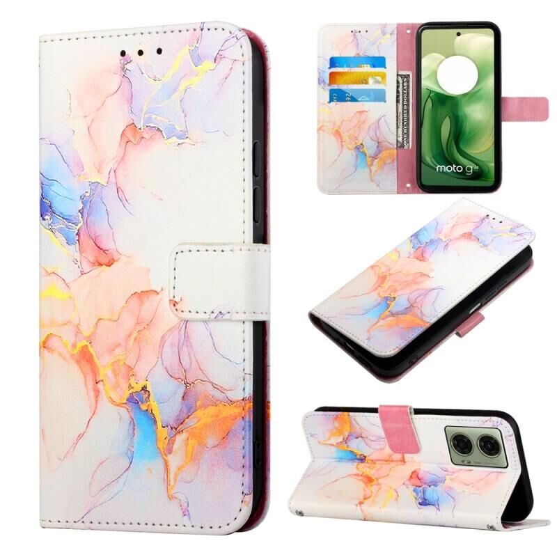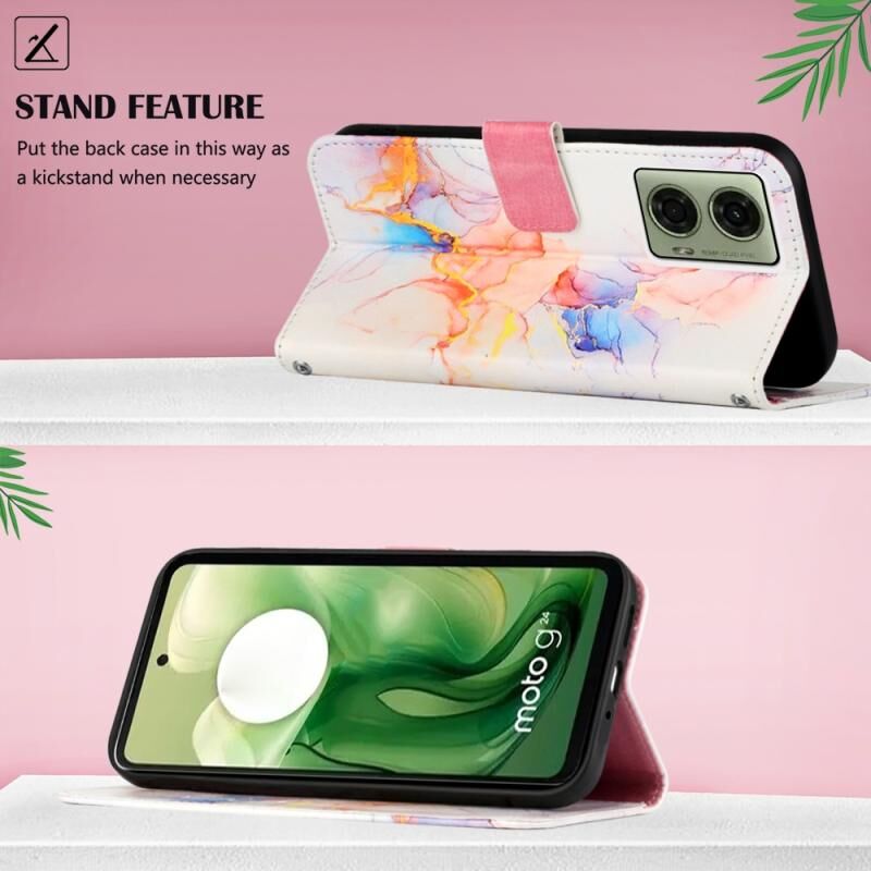 Θήκη τηλεφώνου από δέρμα με σχέδιο μαρμάρου για Motorola Moto G04 4G / G24 4G PT003 (Ροζ Μωβ Χρυσό)