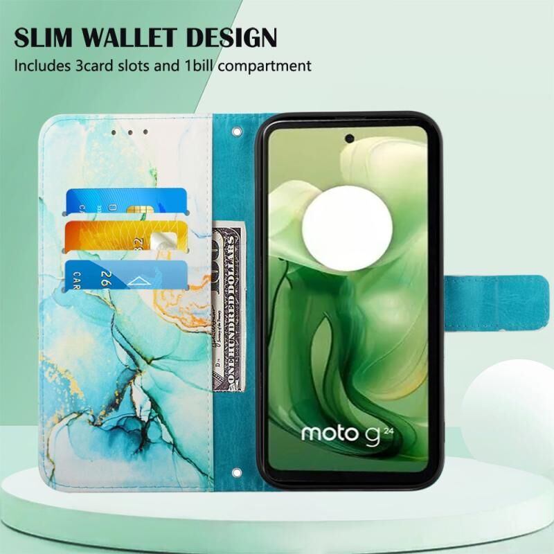 Θήκη τηλεφώνου από δέρμα με σχέδιο μαρμάρου για Motorola Moto G04 4G / G24 4G PT003 (Ροζ Μωβ Χρυσό)