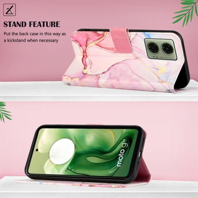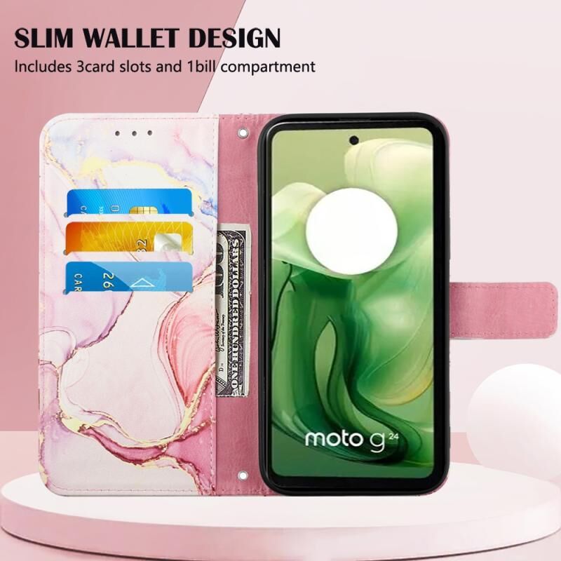 Θήκη τηλεφώνου από δέρμα με σχέδιο μαρμάρου για Motorola Moto G04 4G / G24 4G PT003 (Ροζ Μωβ Χρυσό)