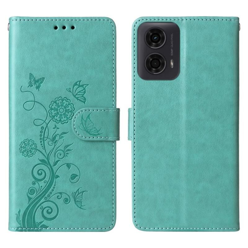 Θήκη τηλεφώνου δερμάτινη με ανάγλυφα σχέδια πεταλούδας και λουλουδιών για Motorola Moto G04 / G04s / G24 / E14 (Χρυσό)