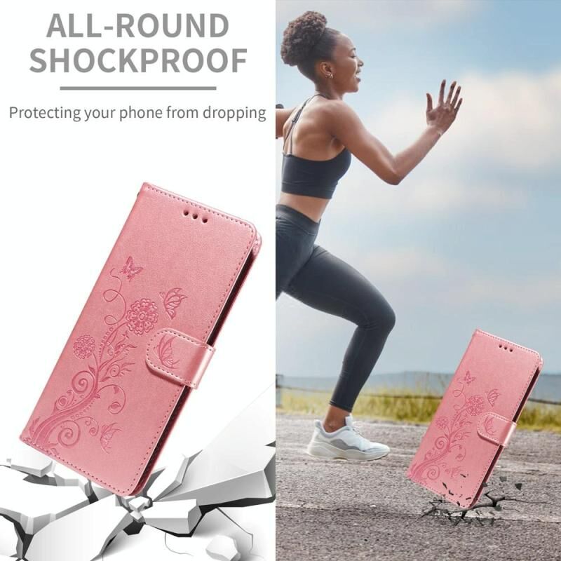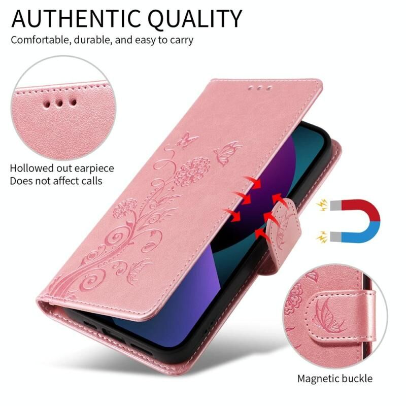 Θήκη τηλεφώνου δερμάτινη με ανάγλυφα σχέδια πεταλούδας και λουλουδιών για Motorola Moto G04 / G04s / G24 / E14 (Χρυσό)