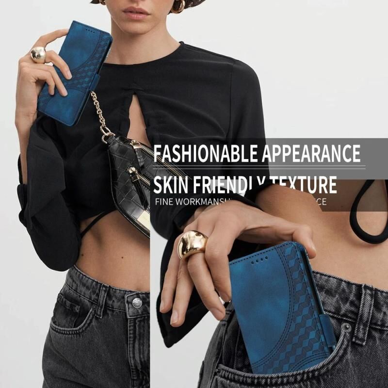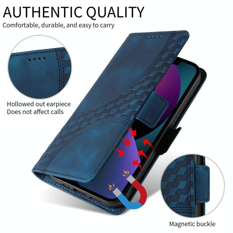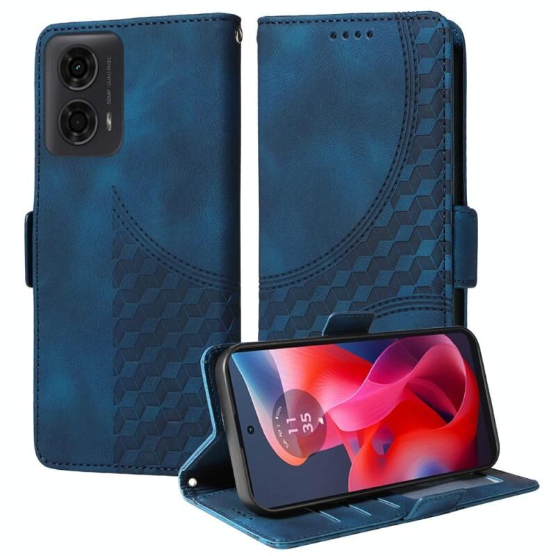 Θήκη κινητού τηλεφώνου με ανάγλυφο ρόμβο και αστρικό δέρμα για Motorola Moto G04 / G04s / G24 / E14 (Μπλε)