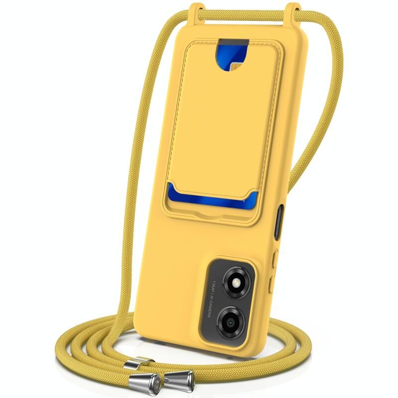 Για Motorola Moto G04 / G04s / G24 ενσωματωμένη κάρτα τσάντα τσάντα στερεό χρώμα υγρό σιλικόνης τηλέφωνο υπόθεση με κορδόνι (κίτρινο)