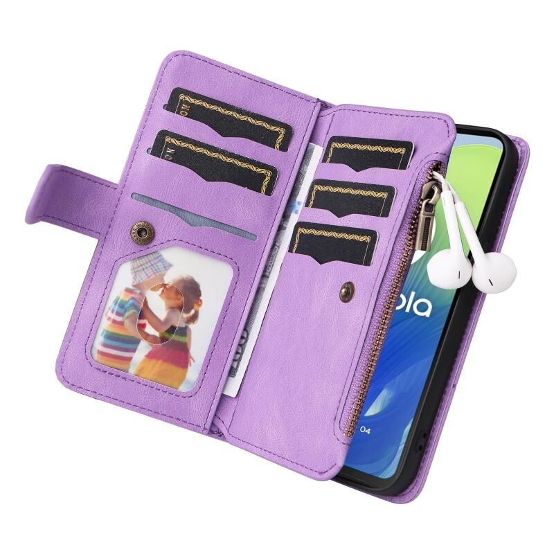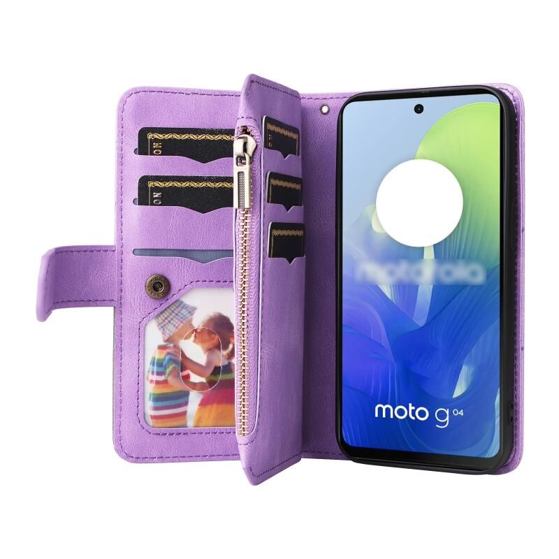 Για Motorola Moto G04 / G24 Διπλό χρώμα 9 υποδοχές καρτών φερμουάρ πορτοφόλι δερμάτινη θήκη τηλεφώνου (Μωβ)