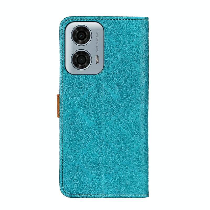 Για Motorola Moto G04/G24 Ευρωπαϊκή Floral ανάγλυφη Flip δερμάτινη θήκη τηλεφώνου (μπλε)