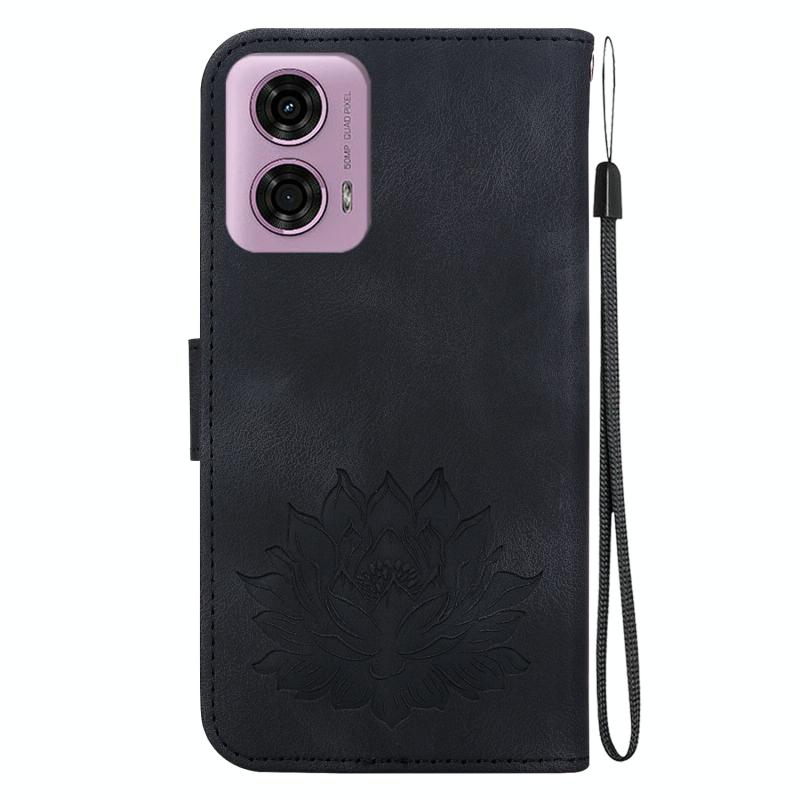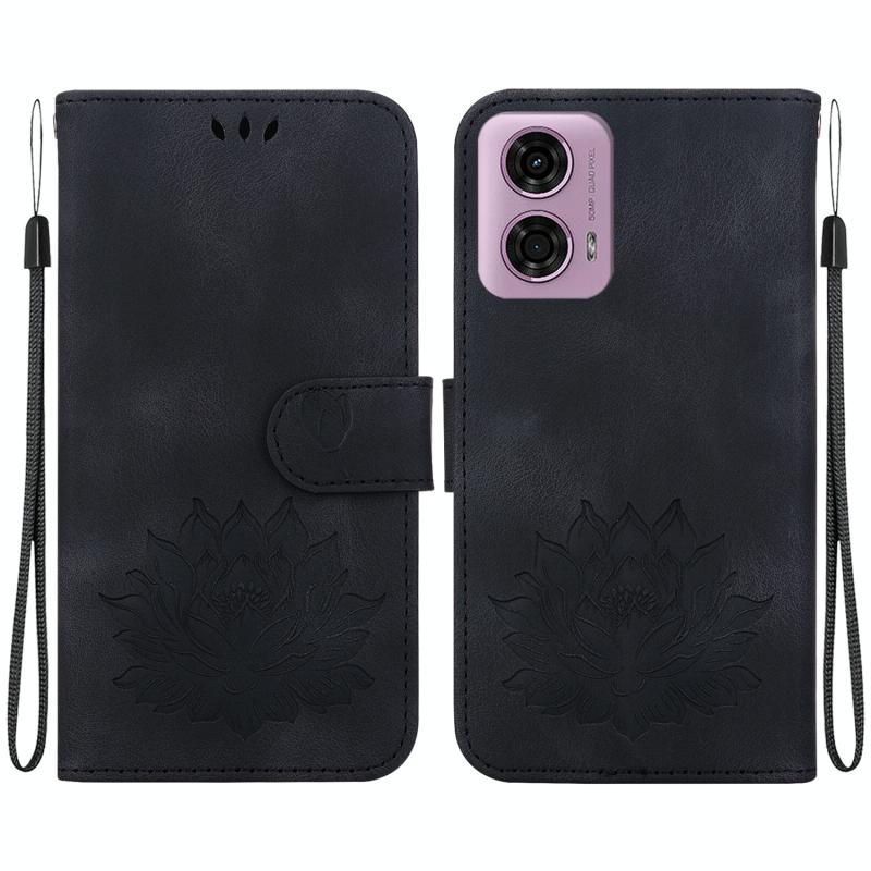 For Motorola Moto G04 / G24 Lotus Embossed Leather Phone Case(Black)