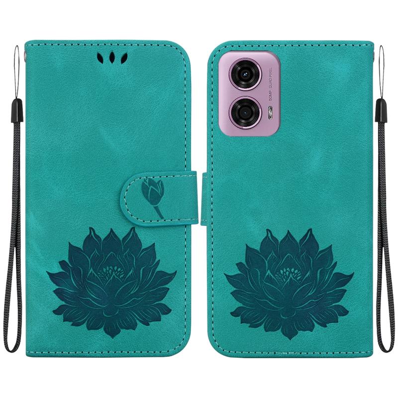 For Motorola Moto G04 / G24 Lotus Embossed Leather Phone Case(Green)