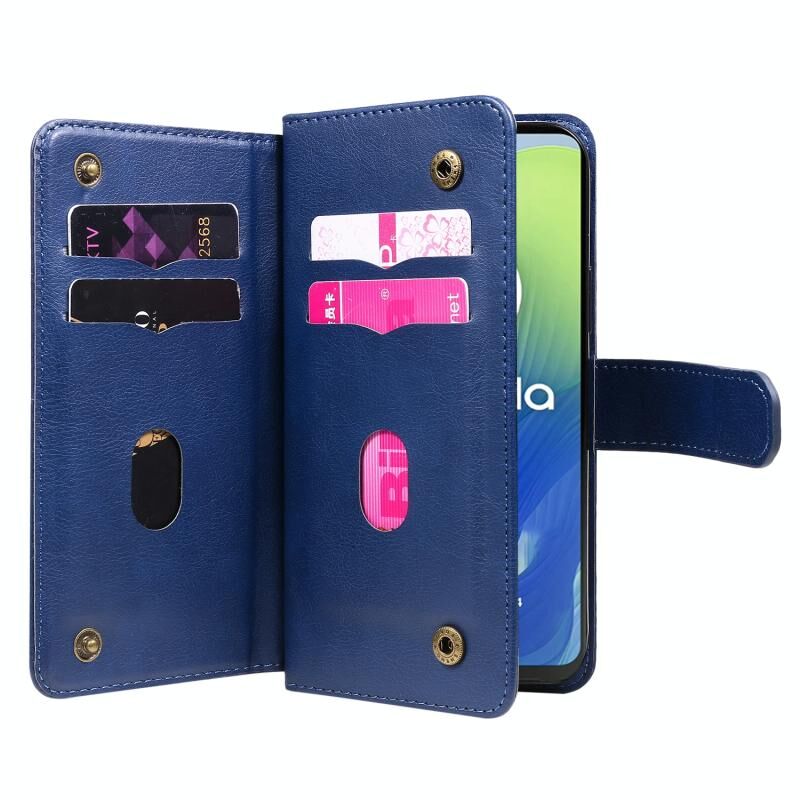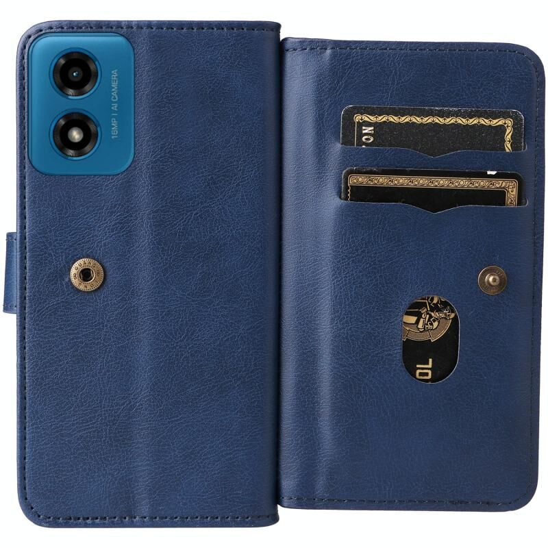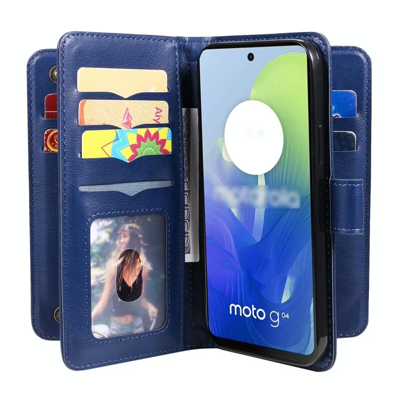 Για Motorola Moto G04 / G24 Πολυλειτουργικό πορτοφόλι 10 υποδοχές καρτών Δερμάτινη θήκη τηλεφώνου (σκούρο μπλε)