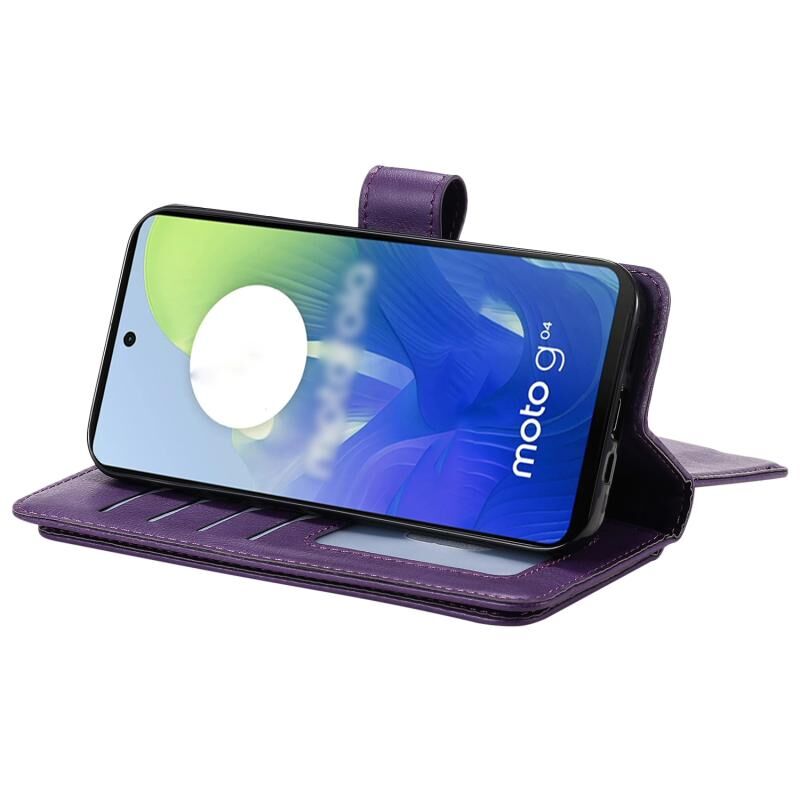 Για Motorola Moto G04 / G24 Πολυλειτουργικό πορτοφόλι 10 υποδοχές καρτών Δερμάτινη θήκη τηλεφώνου (Violet)