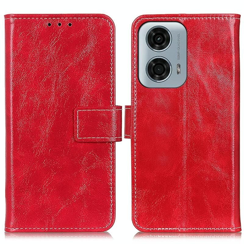 Θήκη τηλεφώνου από δέρμα με υφή Crazy Horse Retro για Motorola Moto G04/G24 (Μαύρο)