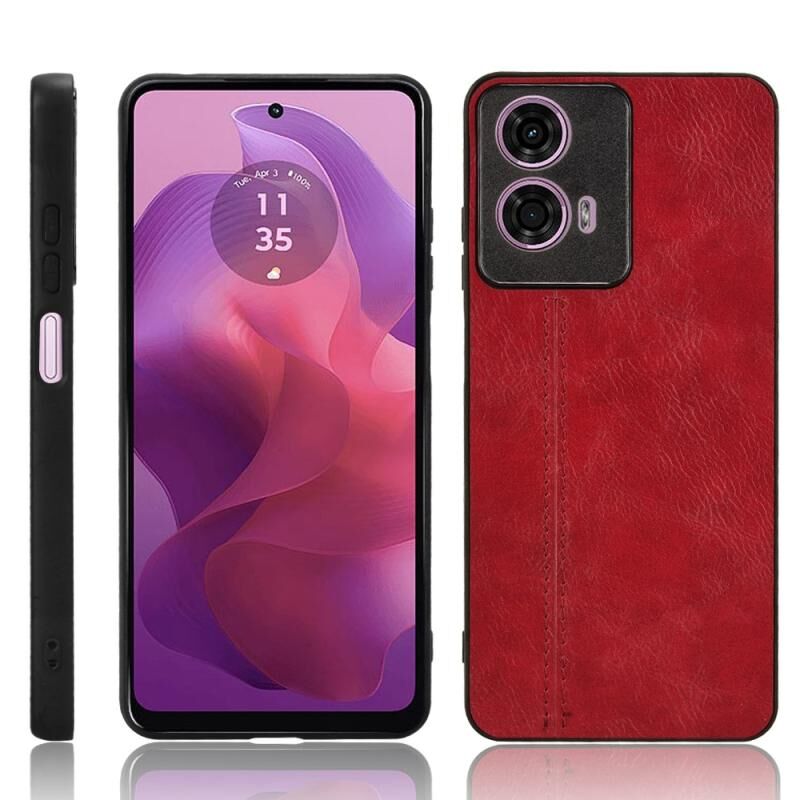 Για Motorola Moto G04 / Moto G24 Αγελάδα μοτίβο ραπτικής πίσω κάλυμμα τηλέφωνο υπόθεση (κόκκινο)