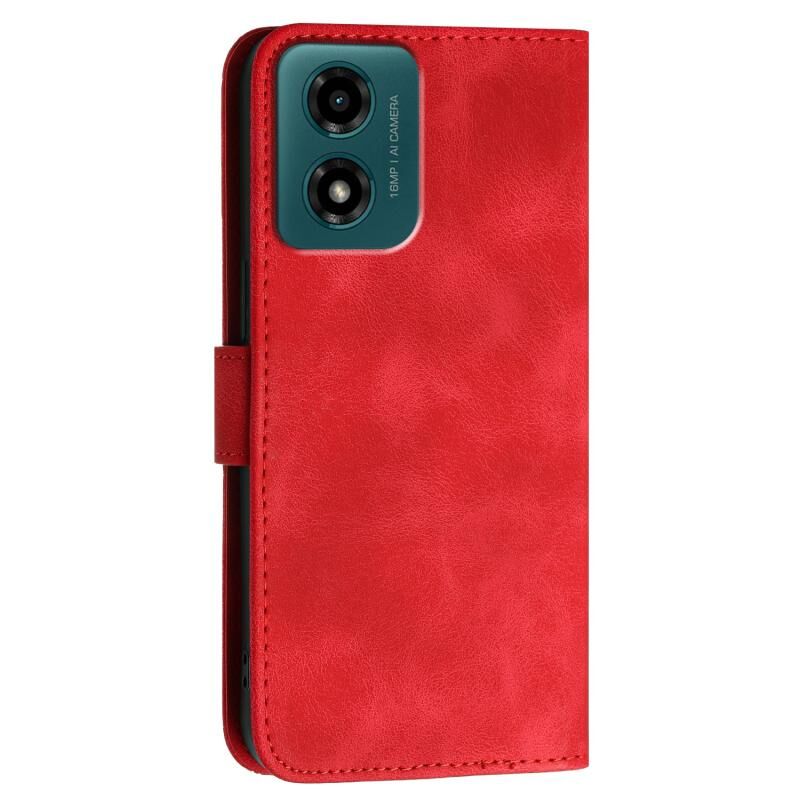 Θήκη τηλεφώνου δερμάτινη με ανάγλυφο σχέδιο πεταλούδας και κορδόνι για Motorola Moto G04s 4G Global Grid (Κόκκινο)