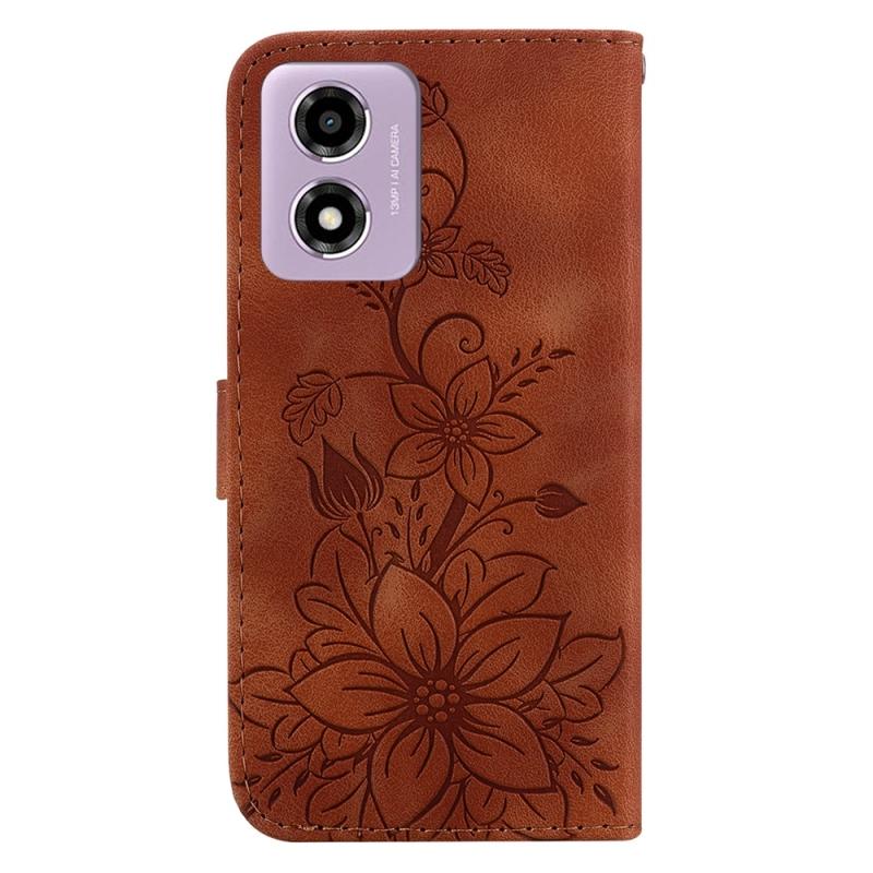 For Motorola Moto G04s / Moto E14 Lily Embossed Leather Phone Case(Brown)
