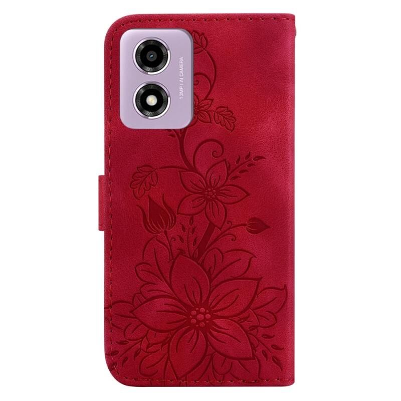 Θήκη τηλεφώνου από δέρμα με ανάγλυφο σχέδιο Lily για Motorola Moto G04s / Moto E14 (Πράσινο)