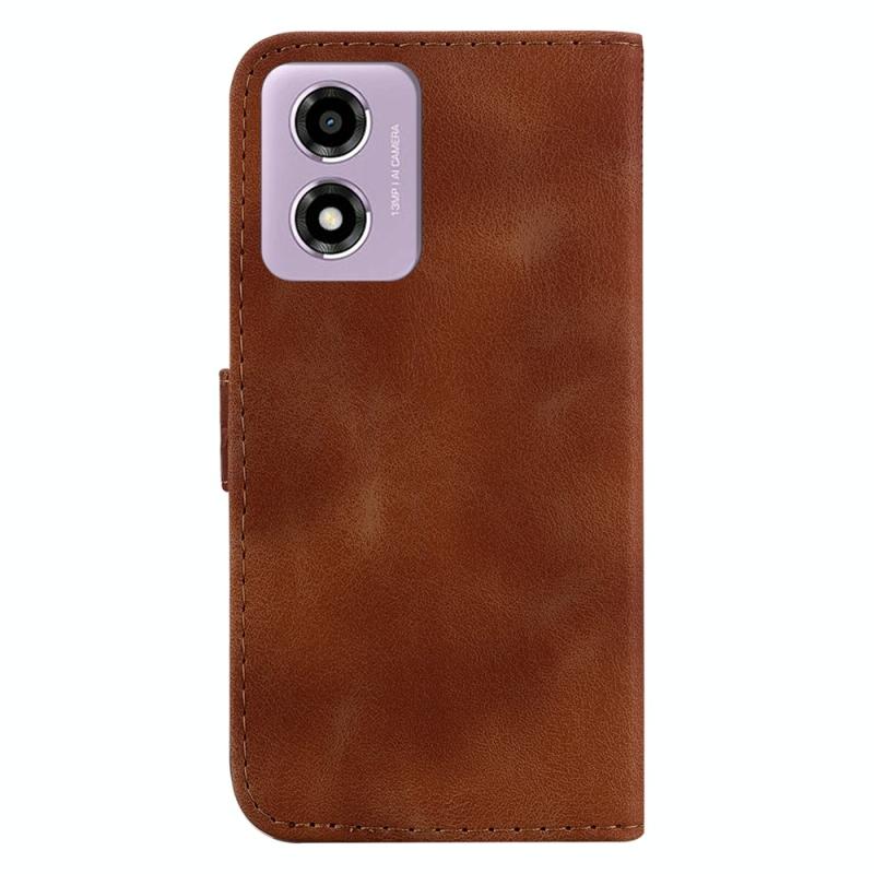 Θήκη τηλεφώνου από δέρμα με ανάγλυφο σχέδιο σε σχήμα επτά για Motorola Moto G04s / Moto E14 (Καφέ)