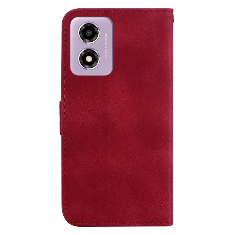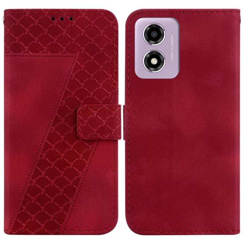Θήκη τηλεφώνου από δέρμα με ανάγλυφο σχέδιο σε σχήμα επτά για Motorola Moto G04s / Moto E14 (Κόκκινο)
