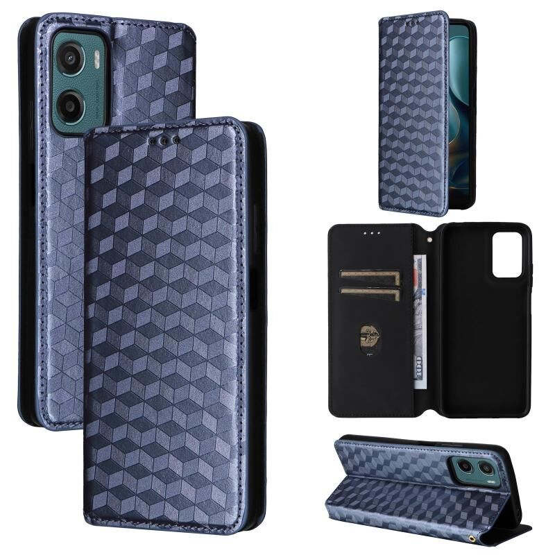 Θήκη τηλεφώνου από δέρμα με υφή κυβικού πλέγματος για Motorola Moto G05 4G / E15 4G (Μαύρο)