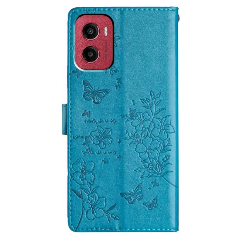 For Motorola Moto G05 Butterflies and Flowers Leather Phone Case(Blue)