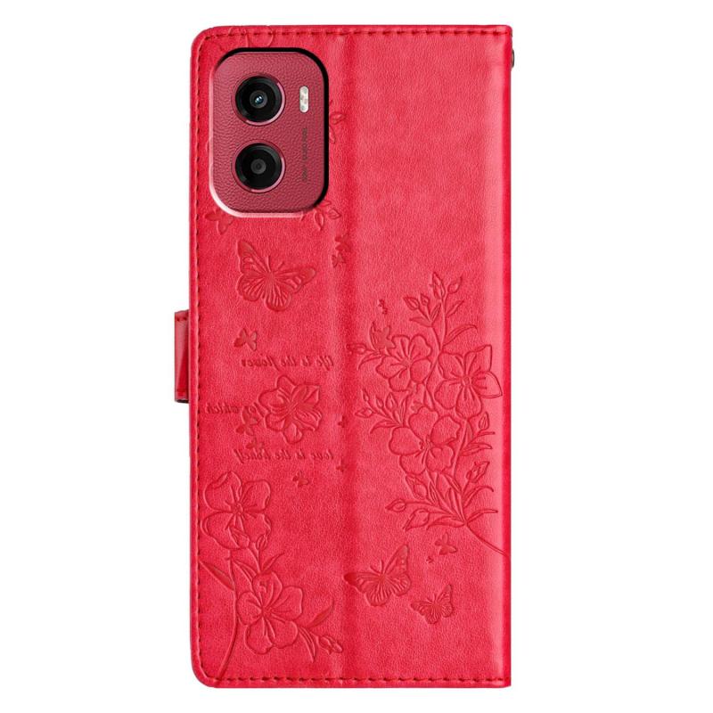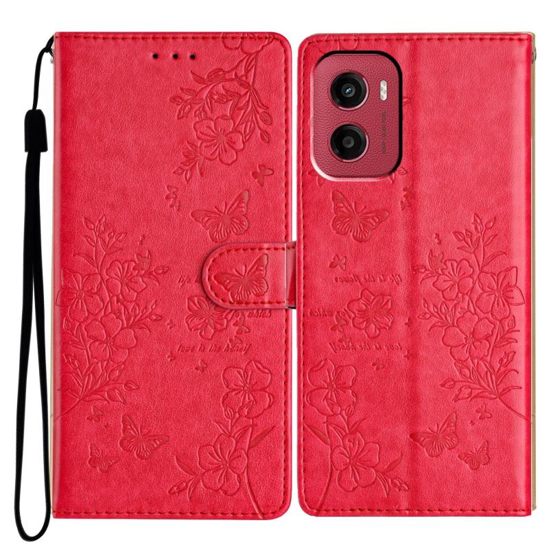For Motorola Moto G05 Butterflies and Flowers Leather Phone Case(Red)
