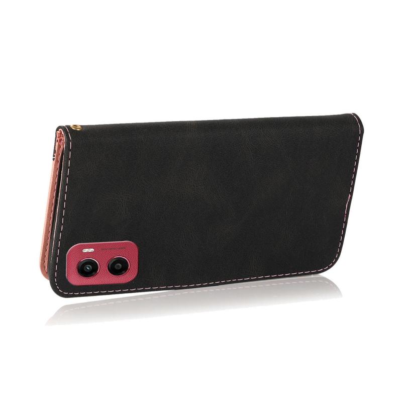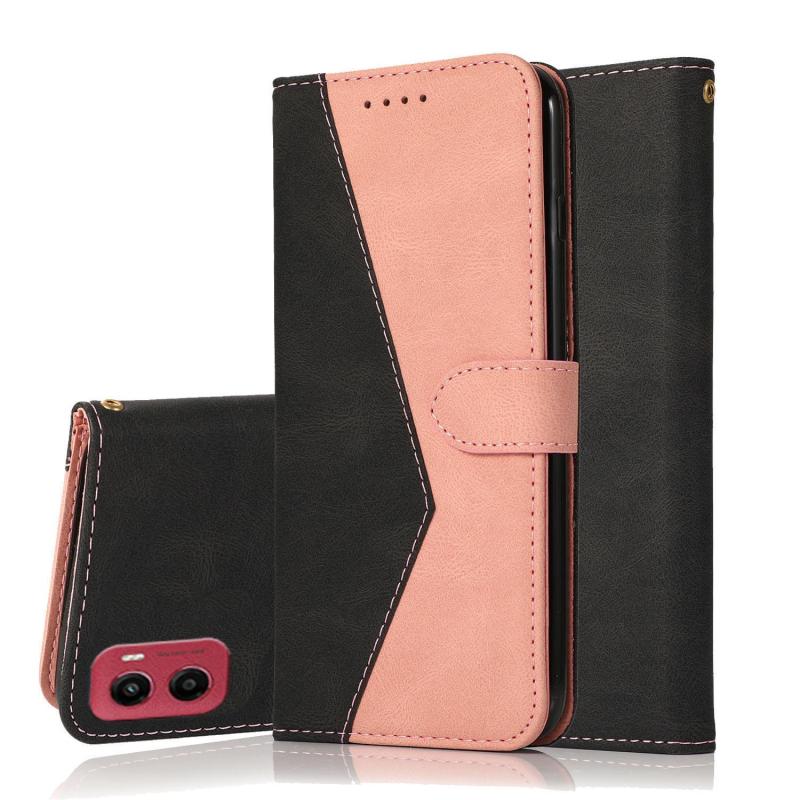 For Motorola Moto G05 Dual-color Stitching Leather Phone Case(Black Rose Gold)