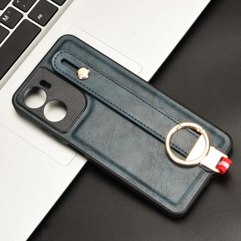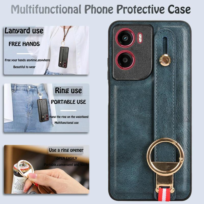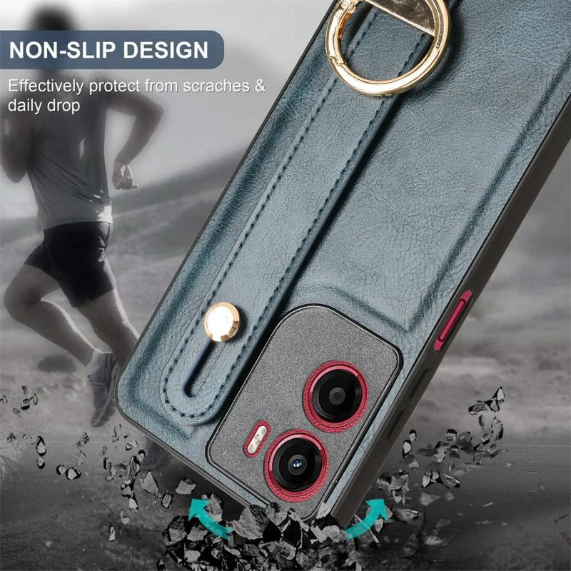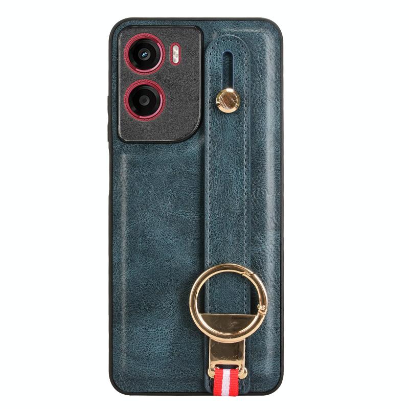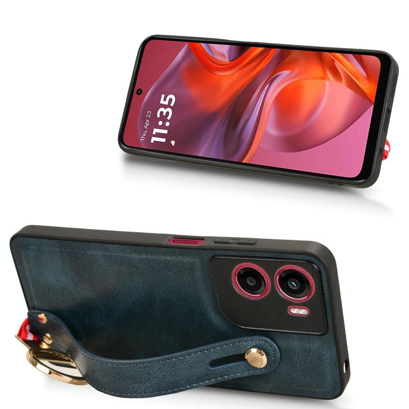 For Motorola Moto G05 / E15 4G Wristband Leather Back Phone Case(Blue)