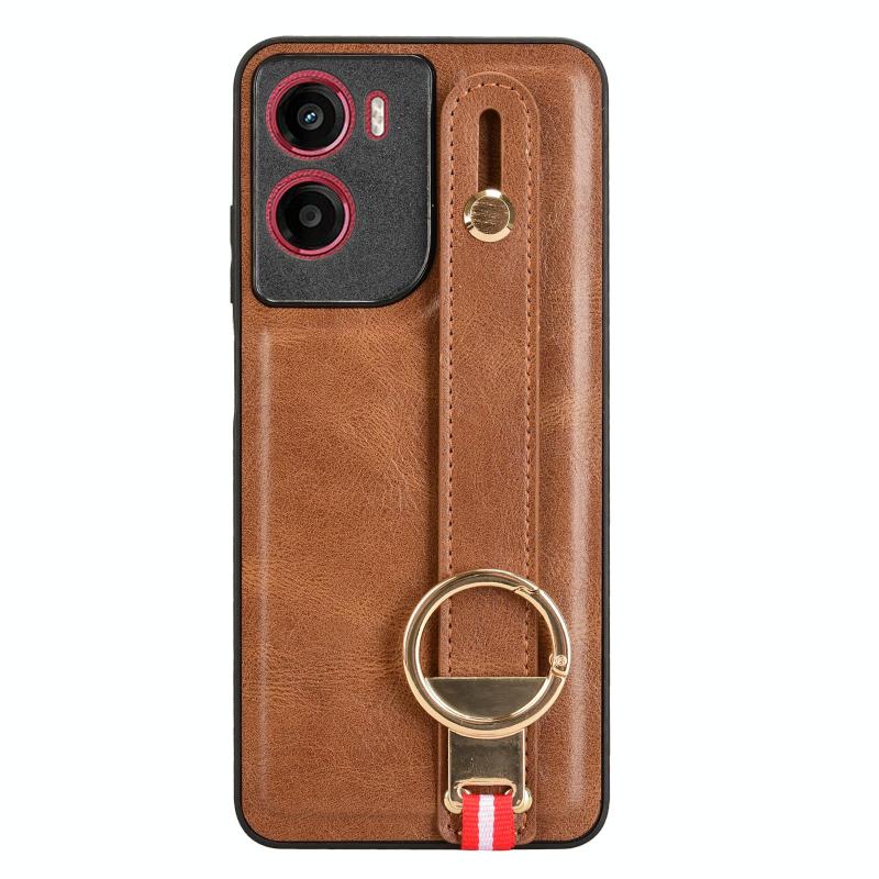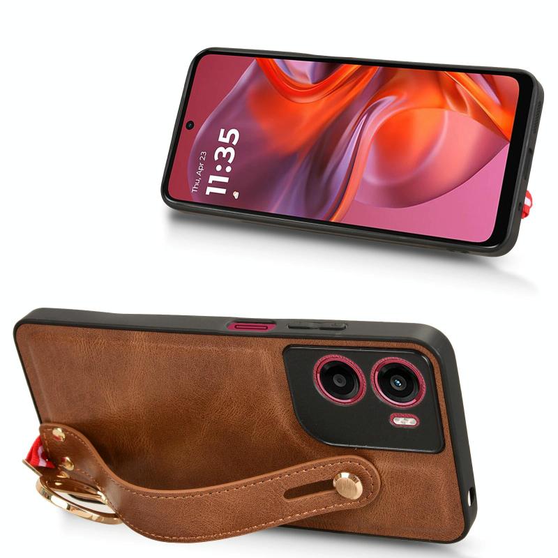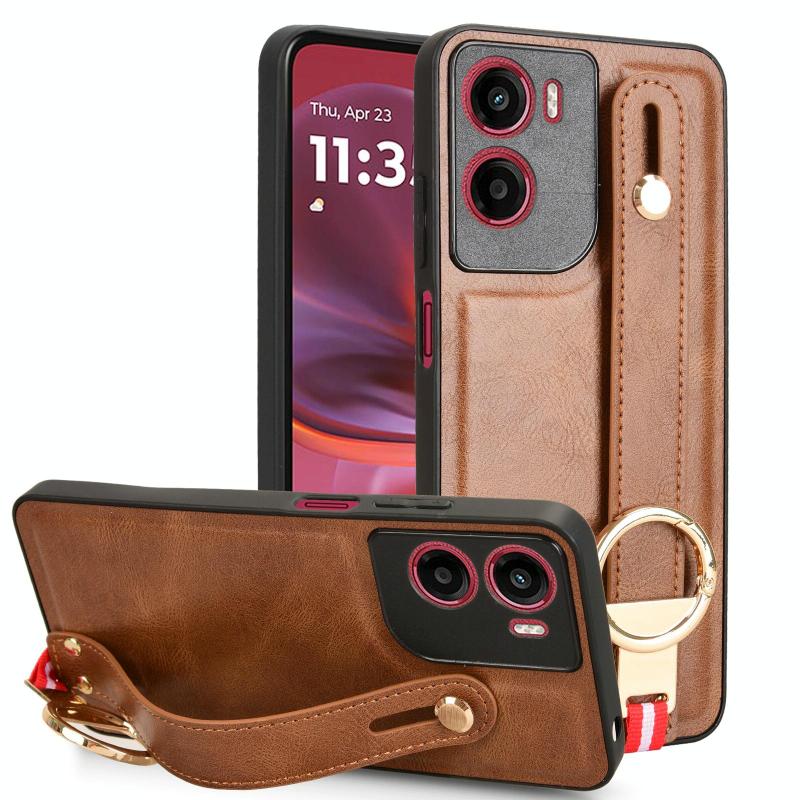 For Motorola Moto G05 / E15 4G Wristband Leather Back Phone Case(Brown)