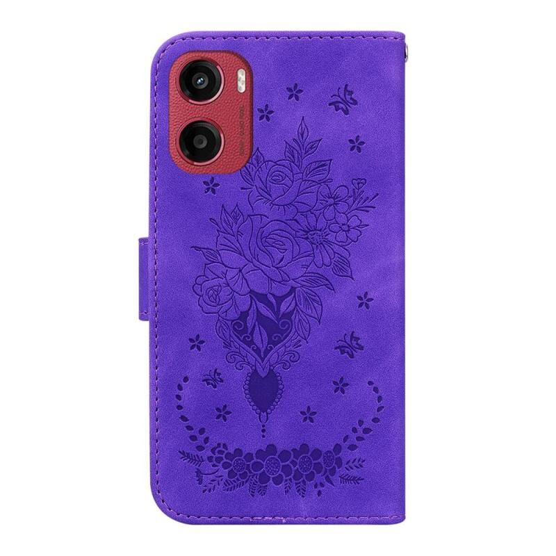 Θήκη τηλεφώνου δερμάτινη ανάγλυφη με σχέδιο πεταλούδας για Motorola Moto G05 / E15 (Μπλε)