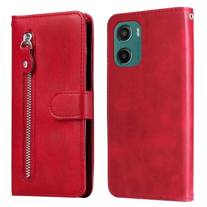 Θήκη τηλεφώνου από δέρμα με υφή μοσχαριού και φερμουάρ για Motorola Moto G05 / E15 (Κόκκινο)