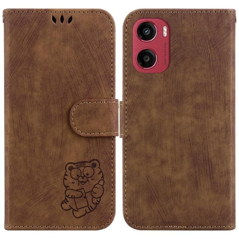Θήκη τηλεφώνου από δέρμα με ανάγλυφο σχέδιο Little Tiger για Motorola Moto G05 / E15 (Καφέ)