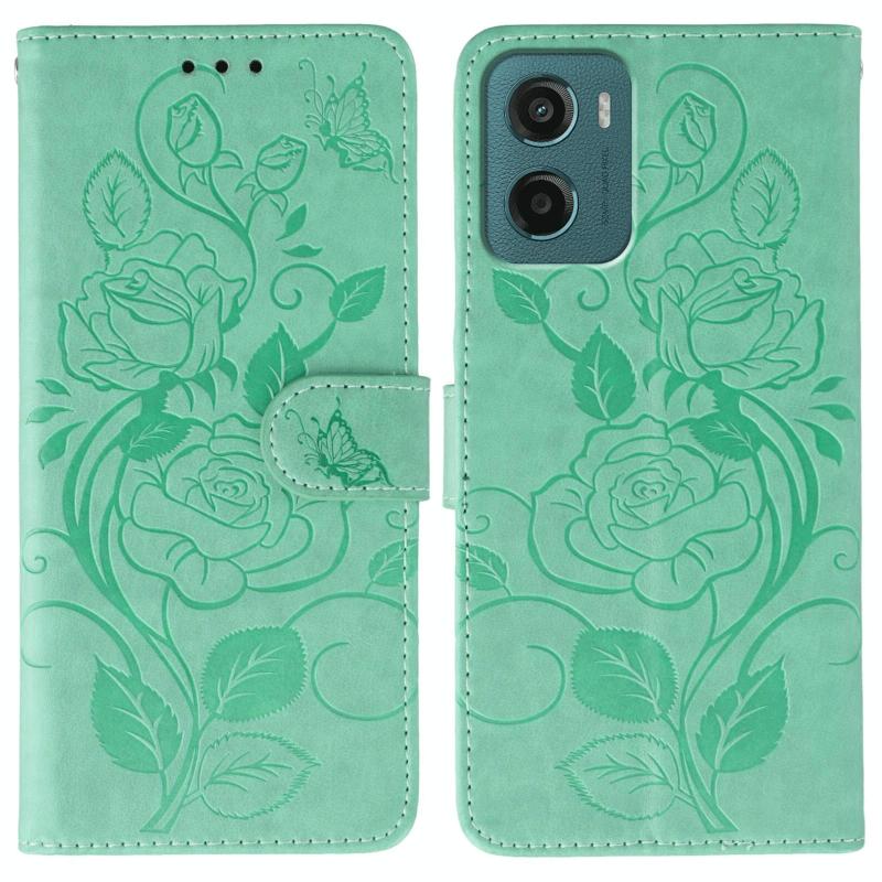 For Motorola Moto G05 / E15 Rose Butterfly Embossed Leather Phone Case(Green)
