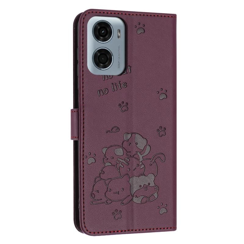 Θήκη δερμάτινη για Motorola Moto G05 με ανάγλυφο γατάκι και κορδόνι (Μωβ)