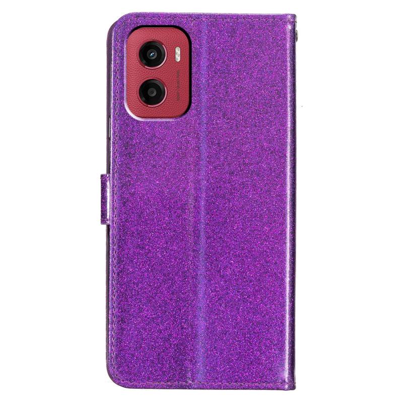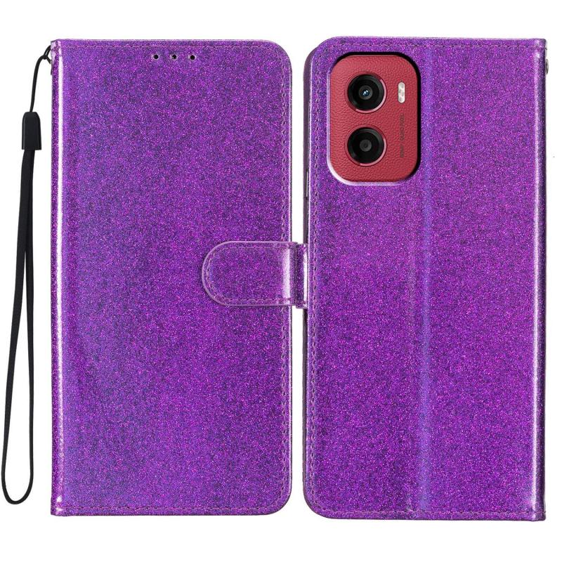 Θήκη τηλεφώνου για Motorola Moto G05, δερμάτινη, με γυαλιστερή πούδρα και φλιπ (Μαύρο)