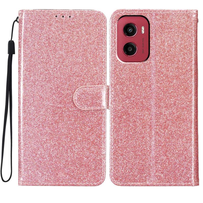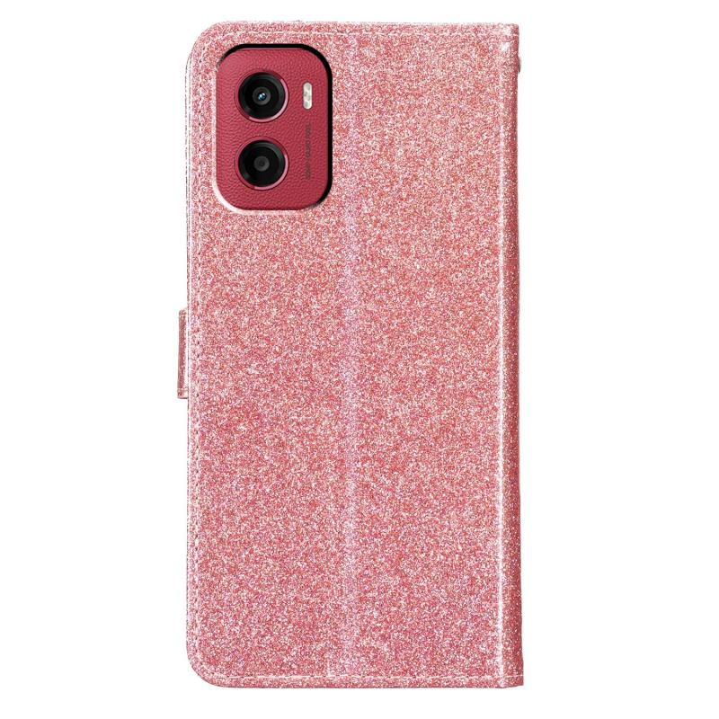 Θήκη τηλεφώνου για Motorola Moto G05, δερμάτινη, με γυαλιστερή πούδρα και φλιπ (Μαύρο)