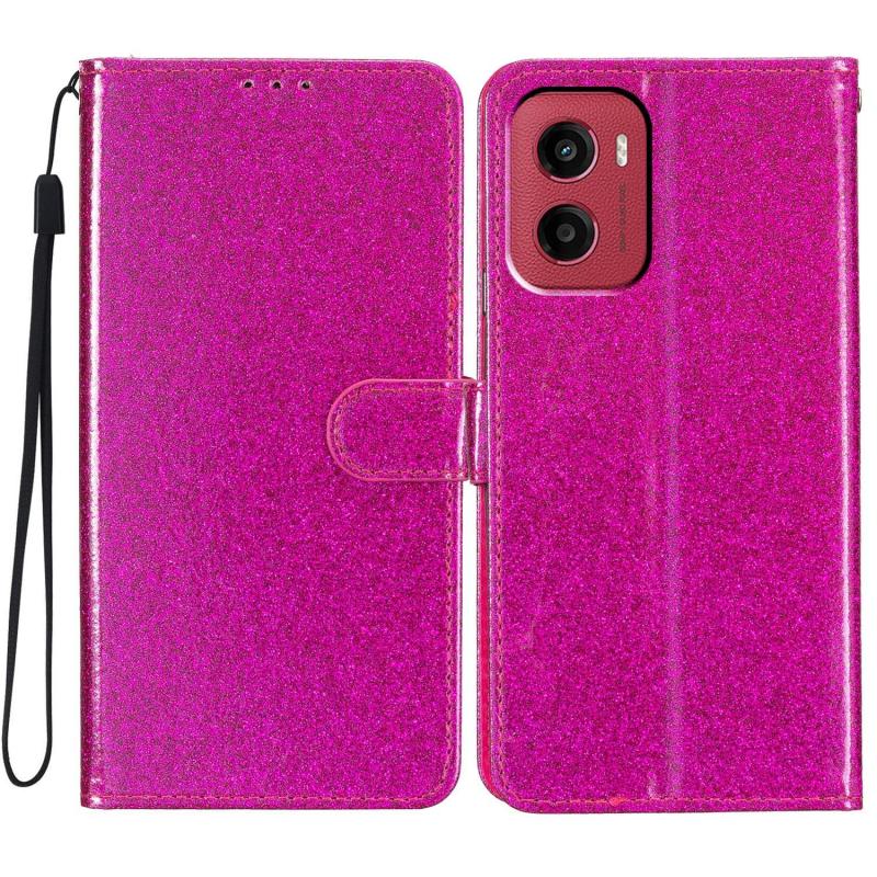 Θήκη τηλεφώνου για Motorola Moto G05, δερμάτινη, με γυαλιστερή πούδρα και φλιπ (Μαύρο)
