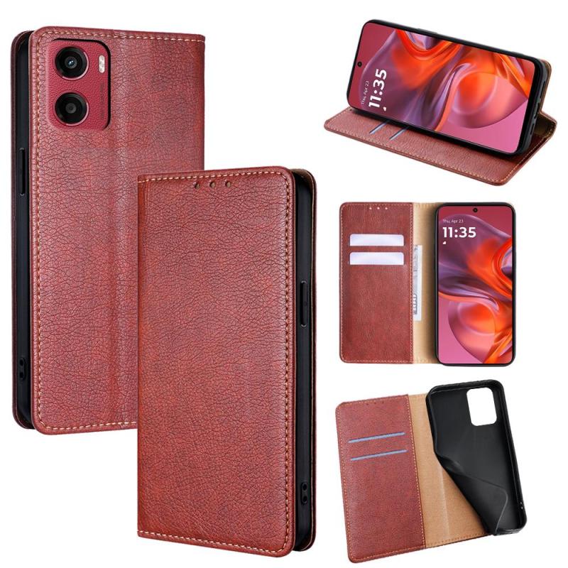 Θήκη τηλεφώνου Motorola Moto G05 Gloss Oil, μονόχρωμη, μαγνητική, από δέρμα (Μαύρο)