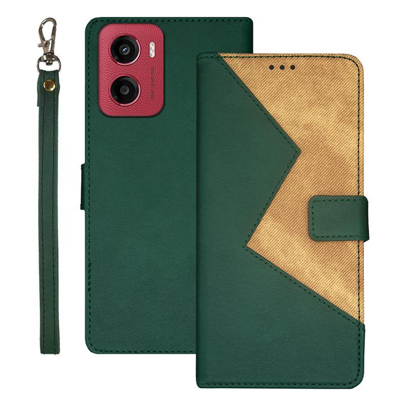 For Motorola Moto G05 idewei Two-color Splicing Leather Phone Case(Green) (idewei)