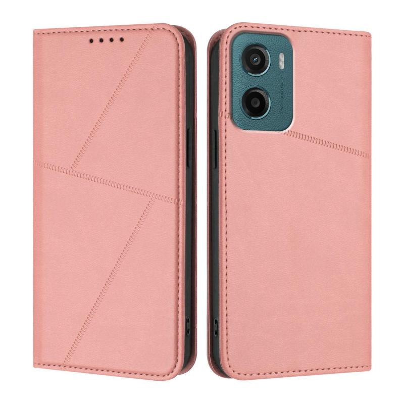 Θήκη τηλεφώνου με ισχυρό μαγνητισμό, ματ, δερμάτινη, τύπου flip για Motorola Moto G05 / Moto E15 (Ροζ)