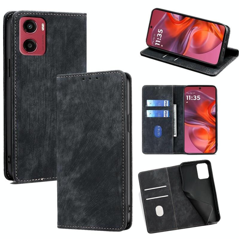 Θήκη κινητού τηλεφώνου Motorola Moto G05 RFID αντι-κλοπής, μαγνητική, δερμάτινη (Μαύρο)