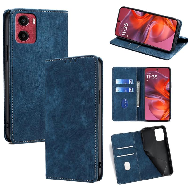 For Motorola Moto G05 RFID Anti-theft Brush Magnetic Leather Phone Case(Blue)