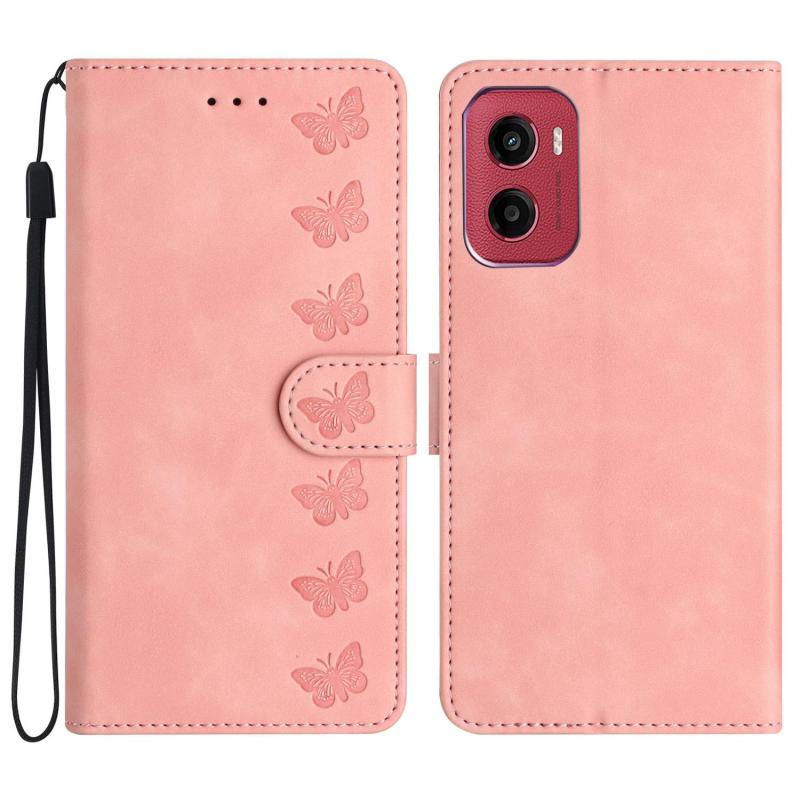 For Motorola Moto G05 Seven Butterflies Embossed Leather Phone Case(Pink)