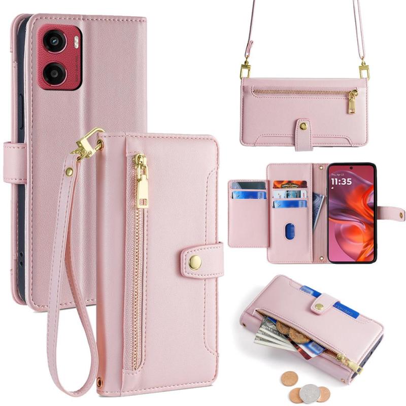 Θήκη τηλεφώνου δερμάτινη με φερμουάρ και σχέδιο προβάτου για Motorola Moto G05 (Μαύρο)