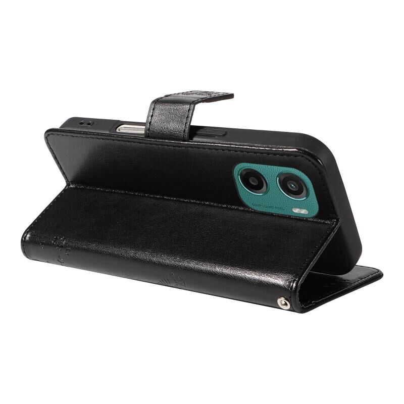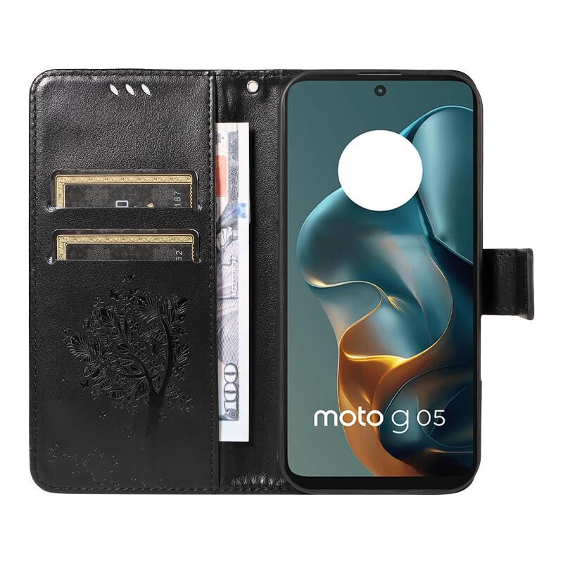 Θήκη τηλεφώνου από δέρμα με σχέδιο αναγλύφου δέντρου & γάτας για Motorola Moto G05 (Ροζ)