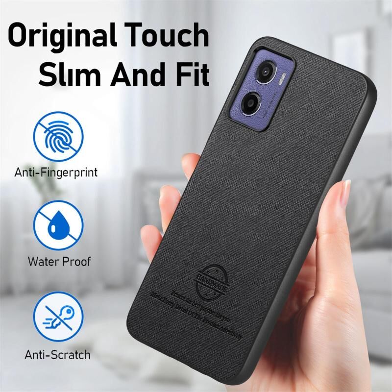 Θήκη κινητού τηλεφώνου από δέρμα με υφασμάτινη επένδυση Twill για Motorola Moto G05 (Μαύρο)